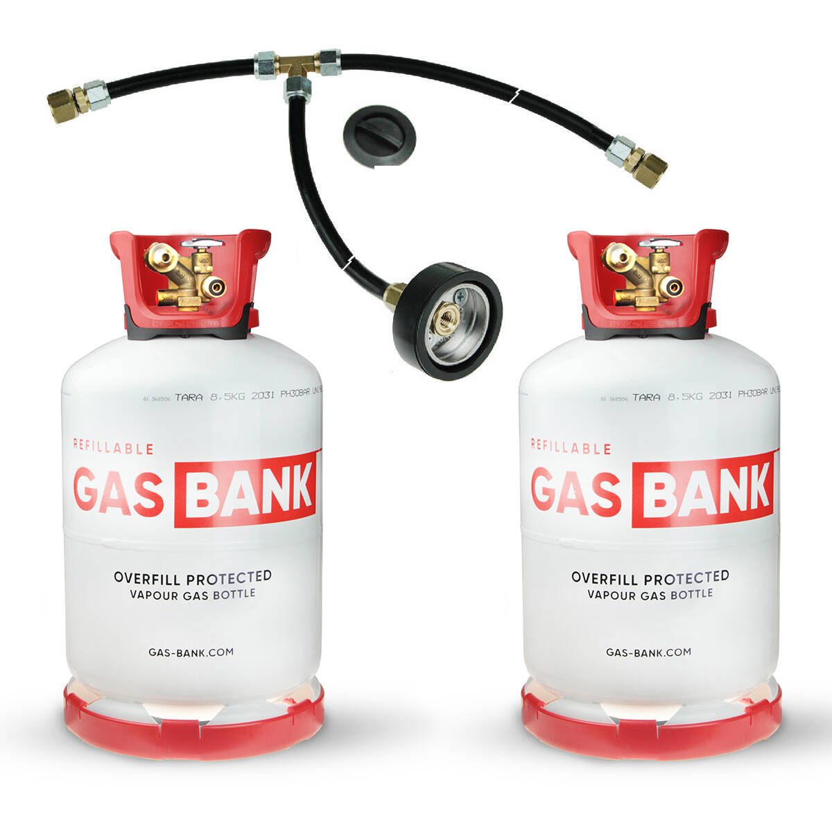 2 x GasBank LS DUO 11 kg - DUPLEX Leichtstahlflasche mit Füllmengenbegrenzungsventil (OPD) bis zu 80%