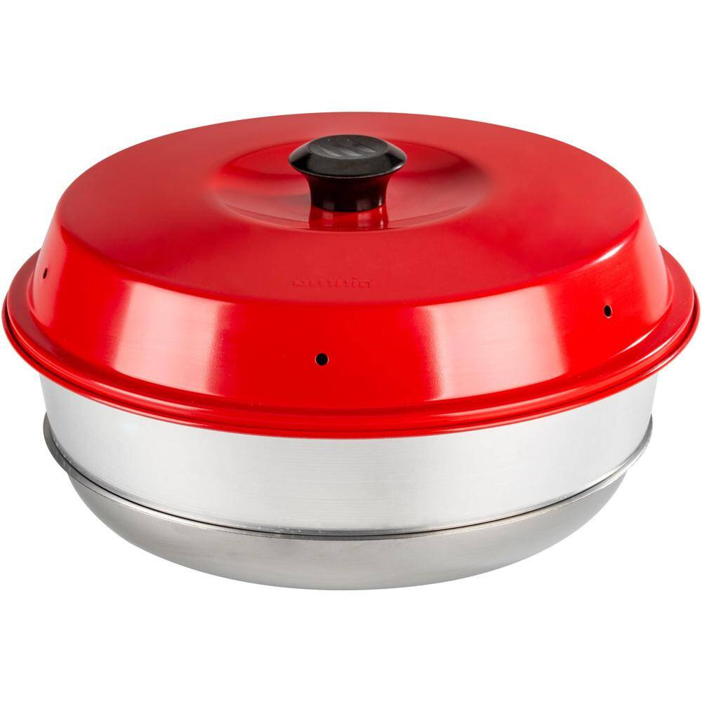 Die Wärme des Herdes wird durch Konvektion zum Backwerk befördert und die Form der Konstruktion gibt sowohl Ober- als auch Unterhitze. Nicht geeignet für Lebensmittel mit hohem Säure- und/oder Salzgehalt. Nicht spülmaschinengeeignet.
