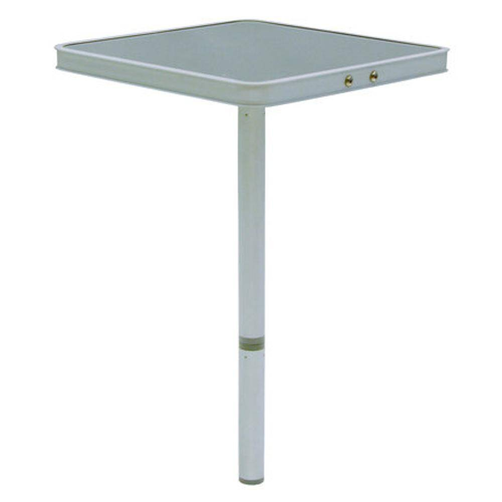 Praktischer Aluminiumtisch mit abschraubbarem Erdspieß. In drei Höhen verwendbar. Durch Einsetzen oder Herausnehmen der einzelnen Stäbe können Sie den Tisch in seiner Höhe variieren.