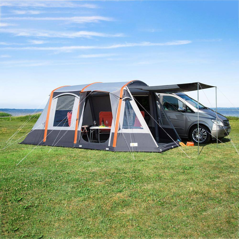 Das Buszelt Pegasus Air ist ein Raumwunder, das auch freistehend ohne Fahrzeug eine optimale Flächennutzung bietet. Dank seiner Ausstattung ist es besonders vielseitig und flexibel gestaltbar: Bis zu vier Schlafplätze sind möglich. Das Air-In-System sorgt für einen Aufbau im Handumdrehen.