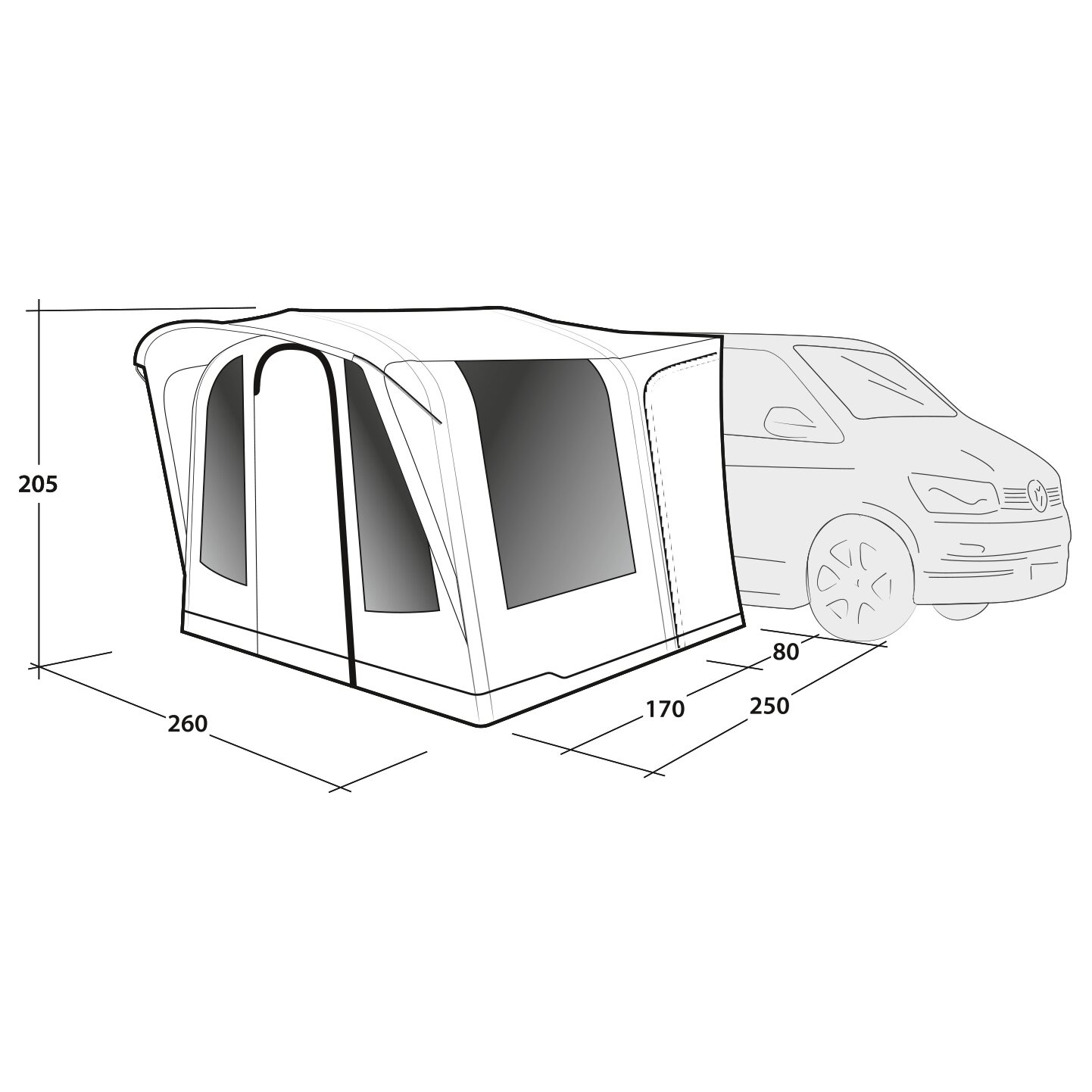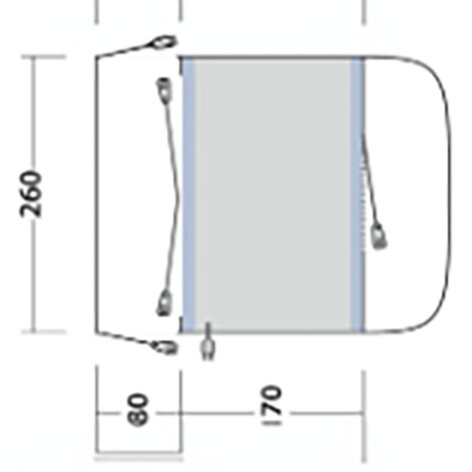 Der praktische Zugang erfolgt flexibel über Türen auf beiden Seiten der Link Access Zone, die Ihr Fahrzeug nahtlos mit dem Vorzelt verbindet. Die Vordertür mit integriertem Vordach sorgt für zusätzlichen Schutz bei jeder Witterung.