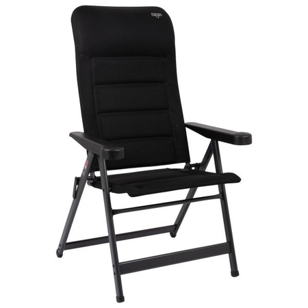 Ein sehr luxuriöser, verstellbarer Klappstuhl. Dieser Stuhl bietet dank der 7-fach verstellbaren Rückenlehne und dem 3D-Polsterstoff maximalen Komfort. Die komfortable Polsterung des Stoffs ist besonders luftdurchlässig und behält durch die offene Zellstruktur keine Feuchtigkeit zurück. Das lässt diesen Stuhl schneller trocknen als Stühle mit einer herkömmlichen Schaumstoff-Polsterung. Sowohl die Rückenlehne als auch die Sitzfläche und die Armlehnen sind ergonomisch geformt. Der Stuhl ist mit einem eloxierten H-Rahmen ausgestattet, der extra Stabilität und Sicherheit gewährleistet. Der Stuhl hat eine niedrigere Sitzfläche und ist daher sehr gut für kleinere Personen geeignet