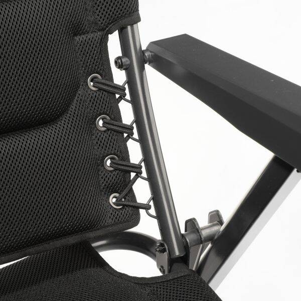 Ergonomischer Sitzkomfort und Entspannung. Aus hochwertigem Material und verstärktem Aluminium gefertigt, erfüllt dieser Stuhl höchste Ansprüche an Qualität und Bequemlichkeit. Die teilweise elastisch geschnürte Rückenlehne bietet ein zusätzliches Mehr an Komfort. Das stufenlos verstellbare, ergonomisch geformte Kopfpolster sorgt für zusätzliche Entspannung. Dank der durchgezogenen Sitzfläche wird die Belastung optimal verteilt. Eine 7-fach verstellbare Rückenlehne und ergonomisch geformte Polster und Armlehnen erlauben langes, bequemes Sitzen sowohl am Esstisch als auch beim Relaxen.