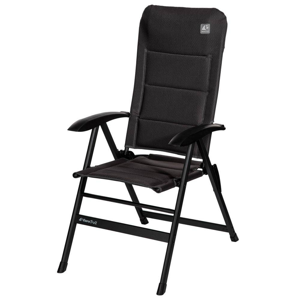 Bequemer Campingstuhl mit hoher Rückenlehne. Sechsfach verstellbares Aluminiumgestell, klein zusammenklappbar. Gepolstertes Air-Mesh-Material. Eine Fußauflage ist optional erhältlich.