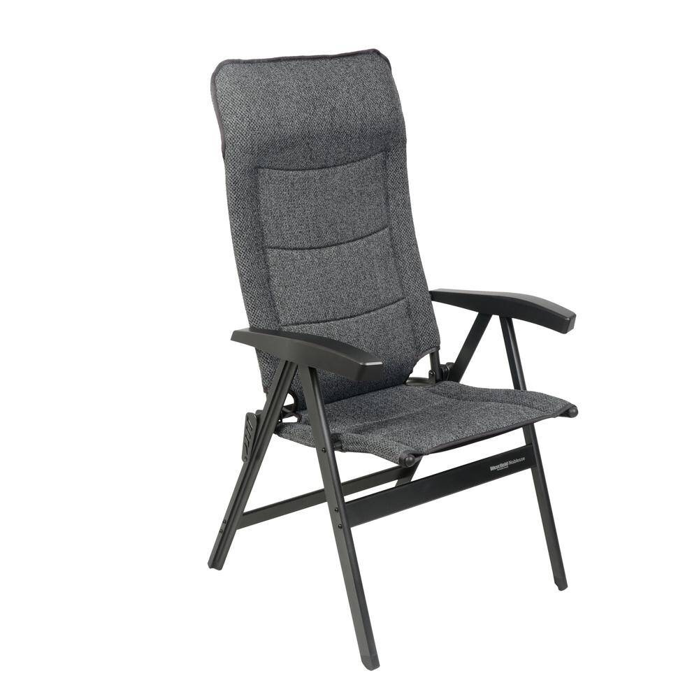 Der Sitzbezug besteht aus ultraweichem DuraDore® 3D Mesh mit 0,8 cm elastischer Zwischenschicht und garantiert höchsten Sitzkomfort. Zusätzlichen Komfort bietet die um 3,5 cm verlängerte Sitzfläche mit der einzigartigen Ergoshell®-Sitztechnologie. Ein in der Dicke verstellbares Kopfkissen ist in der Rückenlehne enthalten. Der Rahmen besteht aus ultraleichtem DuraLite®-Material und wird mit der bekannten SpaceBox-Technologie hergestellt, die Klappscharniere sind aus Aluminium gefertigt.