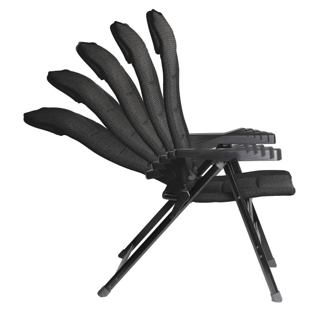 Campingstühle mit pulverlackiertem Alu-Gestell, atmungsaktivem FULL-3D Bezug und metallverstärkten Armlehnen zur Rückenlehnenverstellung. Ausgesprochen stabile und platzsparende Konstruktion, gepaart mit modernem und funktionellem Design. Bezug: atmungsaktiver, UV-beständiger und schnelltrocknender FULL-3D Stoff.