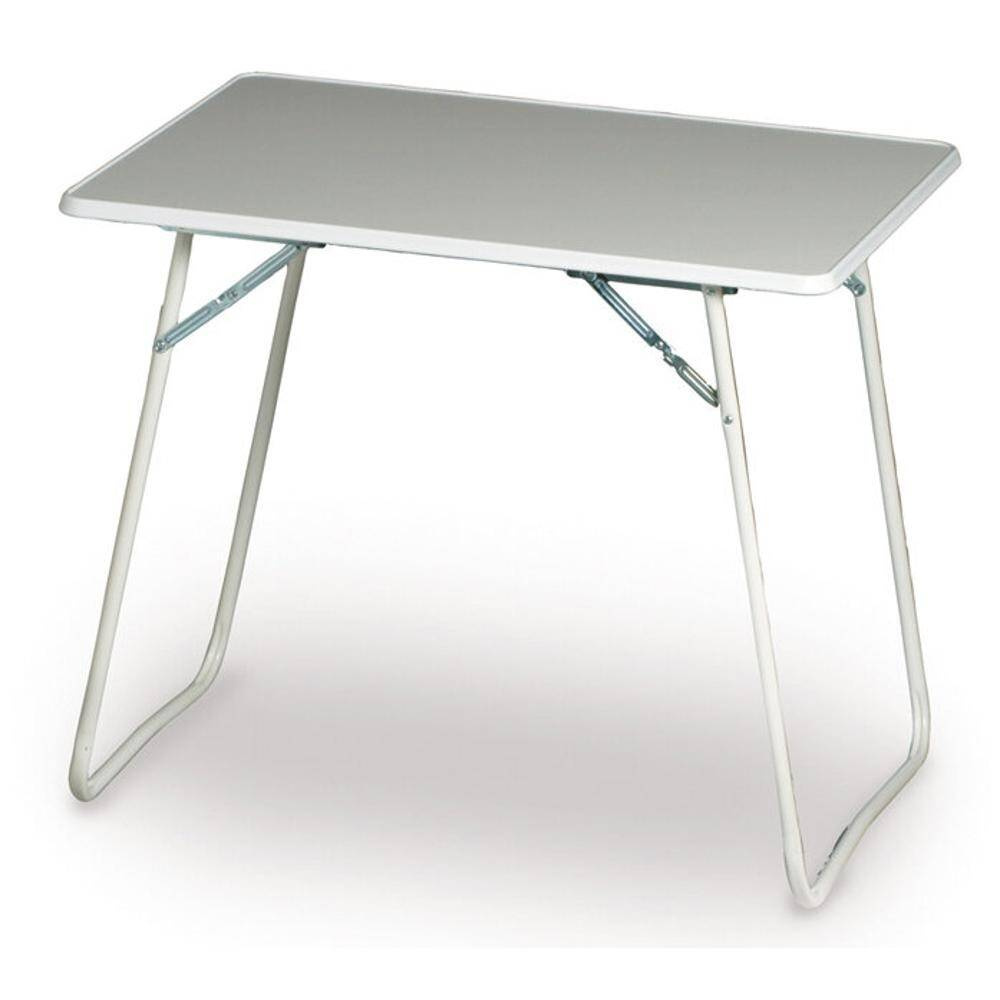 Camping- und Gartentisch mit Bügelgestell, klappbar und mit wetterfester Platte 60 x 80 cm. In weiß und blau.