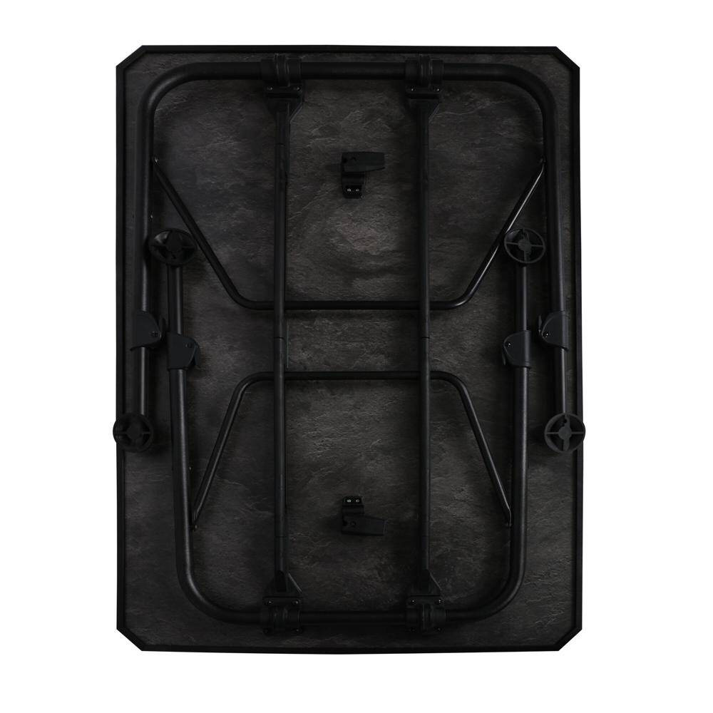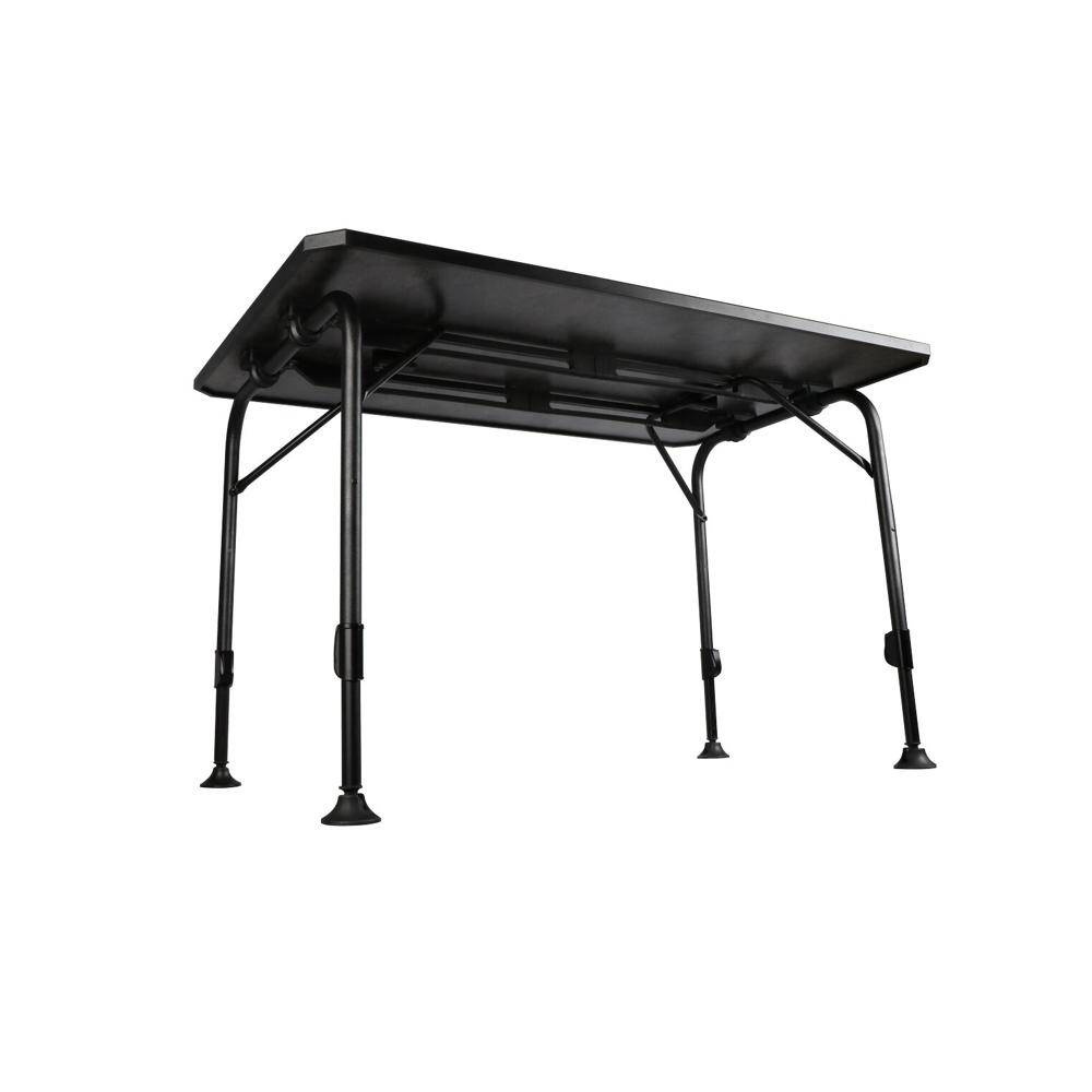 Aluminiumtisch mit stufenlos einstellbarem Höhensystem. Die Tischplatte ist leicht, stark und für Witterungseinflüsse völlig unempfindlich. Der Tisch lässt sich mit allen vier Beinen stufenlos in der Höhe einstellen. Der einzigartige Klapprahmen und das geringe Gewicht des Tisches erleichtern den Transport.