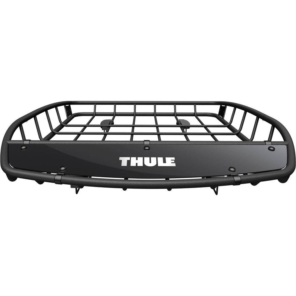 Mit seiner robusten und doch eleganten, leichten Stahlrohrkonstruktion und seinem niedrigen Profil eignet sich dieser Dachkorb für den Transport von Ausrüstung beliebiger Form und Größe. Die abgeschrägten Seitenwände erleichtern das Auf- und Abladen des Gepäcks und die windabweisende Verkleidung verbessert dessen Aerodynamik. Er ist geeignet für das Thule Roof Rack System und mit dem Thule One-Key System abschließbar. Tragfähigkeit 68 kg, Ladefläche L 104 x B 99 x H 13 cm, Abmessungen L 127 x B 104 x H 15 cm, Gewicht 13 kg.