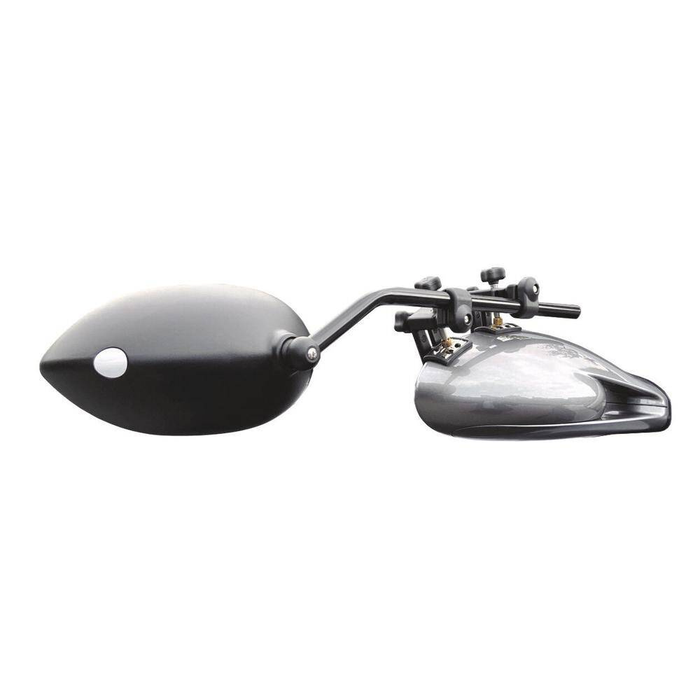 Für den Aero Platinum Spiegel wurde das Design des Aero 4 Spiegels weiterentwickelt. Die flexible, federbelastete Greifer-Platte aus Edelstahl ist größer als bei herkömmlichen Aero 4 Spiegeln. Das verbessert den Halt und sorgt dafür, dass sich der Aero Platinum einfach an die Form des Fahrzeugspiegelrahmens anpassen lässt. Er ist also für die Montage an allen Fahrzeugen geeignet. Die Klemme und der Durchmesser des Arms wurden ebenfalls vergrößert.