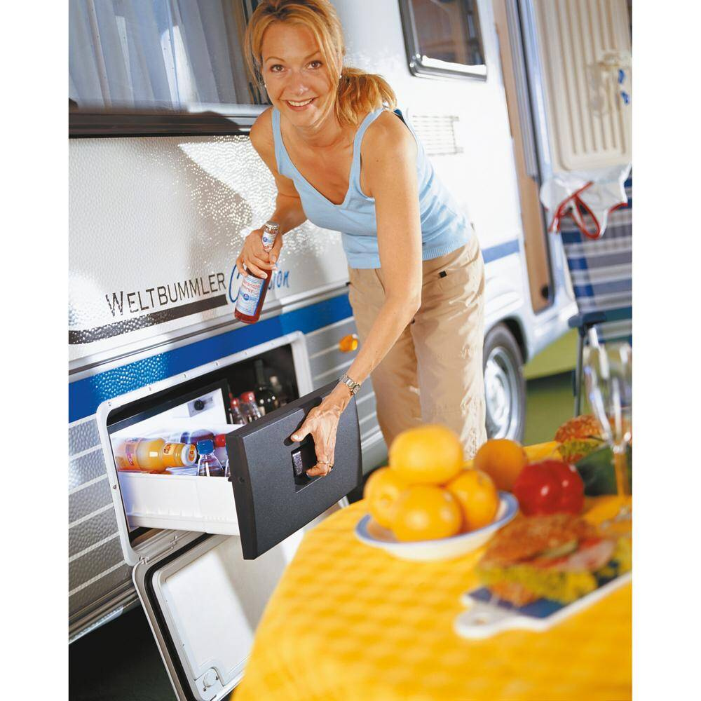 Diese Kompressorbox nutzt verborgene Hohlräume im Wohnwagen, auf dem Boot oder im LKW, z. B. in Bordküchen, unter Sitzbänken – einfach überall, wo sich ungenutzter Platz auftut. Sogar außen liegende Staufächer können so zur Kühlung genutzt werden. Hierzu kann – falls erforderlich – das Kühlaggregat abgenommen werden (bis zu 1,5 m Zuleitung). Die CoolMatic CD 30 ist die ideale Kühlbox für's Picknick vor dem Caravan.