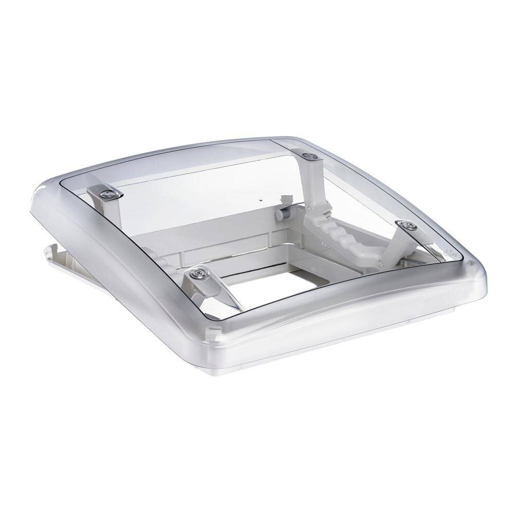Dieses kleine Dometic Mini Heki S Dachfenster mit Zwangsbelüftung lässt viel Licht ins Innere des Fahrzeugs. Am Innenrahmen sind ein Verdunkelungsrollo und ein Fliegengitter befestigt, die separat verstellbar sind. Mit Griffen lässt es sich leicht in eine von fünf möglichen Positionen bringen.