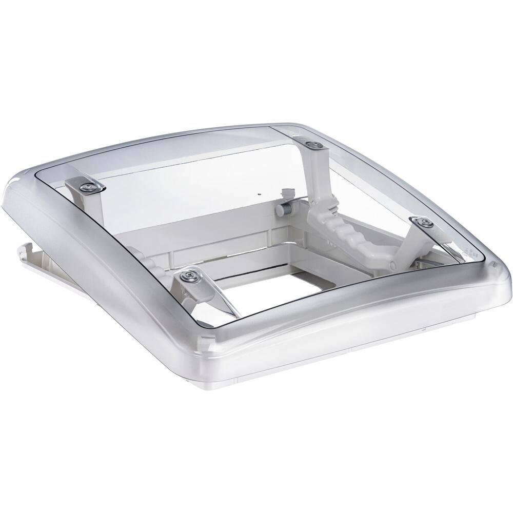 Dieses kleine Dometic Mini Heki S Dachfenster mit Zwangsbelüftung lässt viel Licht ins Innere des Fahrzeugs. Am Innenrahmen sind ein Verdunkelungsrollo und ein Fliegengitter befestigt, die separat verstellbar sind. Mit Griffen lässt es sich leicht in eine von fünf möglichen Positionen bringen.