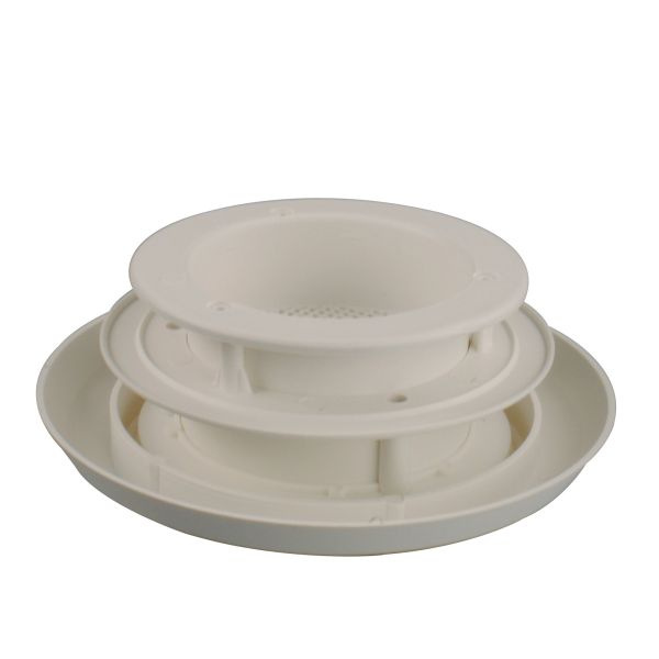 UV-beständiger Pilzlüfter mit Fliegengitter und ø 60 mm Schlauchanschluss.