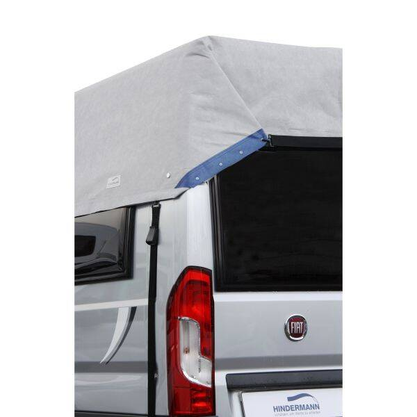 Aus Tyvek hergestellte, atmungsaktive Dachschutzplanen, deren Zuschnittsgrößen speziell auf die verschiedenen Fahrzeuglängen des Fiat Ducato ab Baujahr 2006/07 mit H2-Dach abgestimmt sind. Für perfekten Sitz am Fahrzeug verfügen die Planen ringsum über eine Ösenleiste, so dass sie genau nach den Erfordernissen des Fahrzeugs mittels des serienmäßigen Gurtsystems abgespannt werden können. Die eingesetzten Ösen verfügen über eine integrierte Verstärkung sowie einen untergelegten Schutzstreifen, damit sie nicht mit dem Fahrzeug in Berührung kommen.