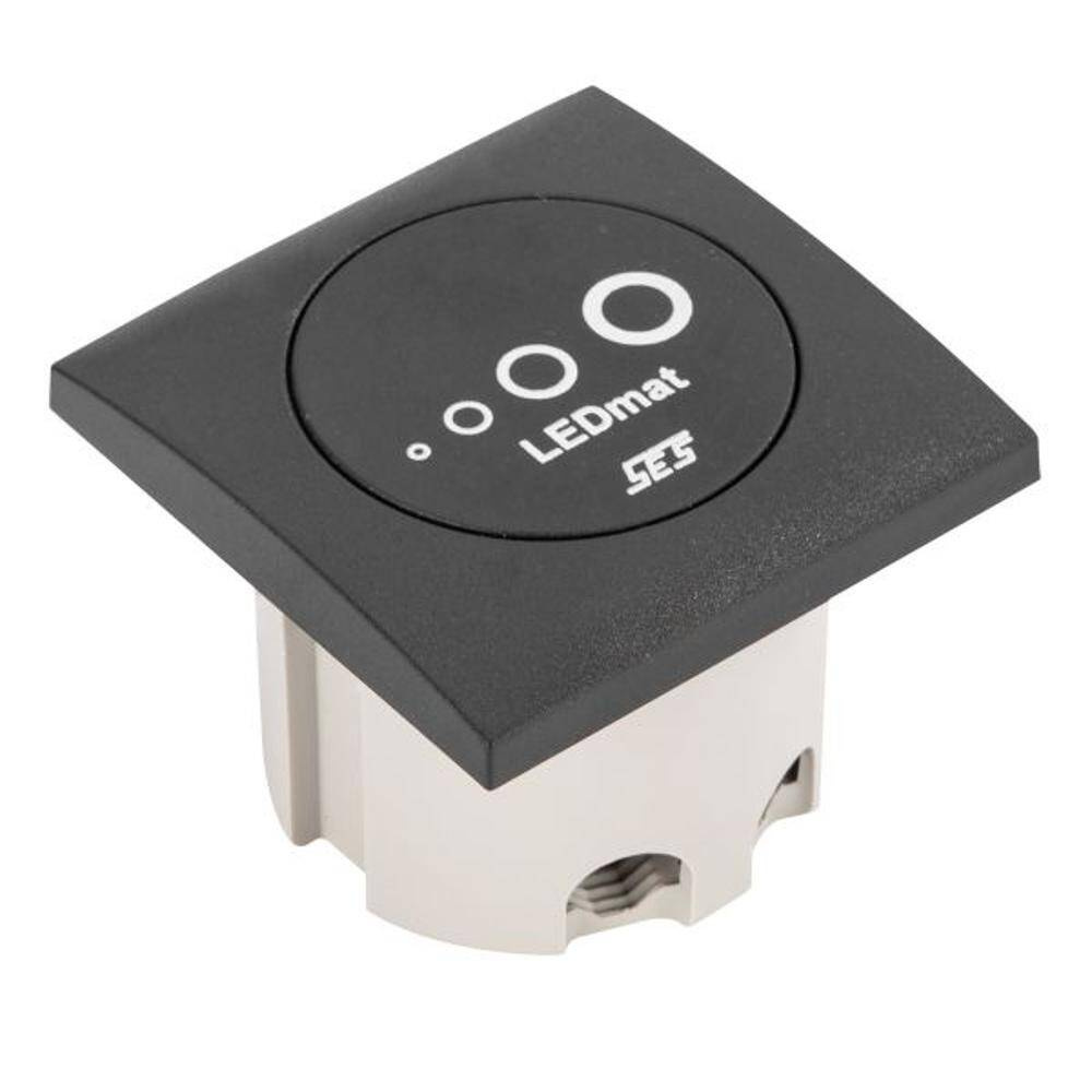 Durch Berühren der Frontplatte mit der Fingerkuppe im Bereich der Symbole lässt sich die Helligkeit der LEDs von voll AN bis AUS dimmen. Leistung: 2 x 15 W bei 12 V oder 2 x 25 W bei 24 V.