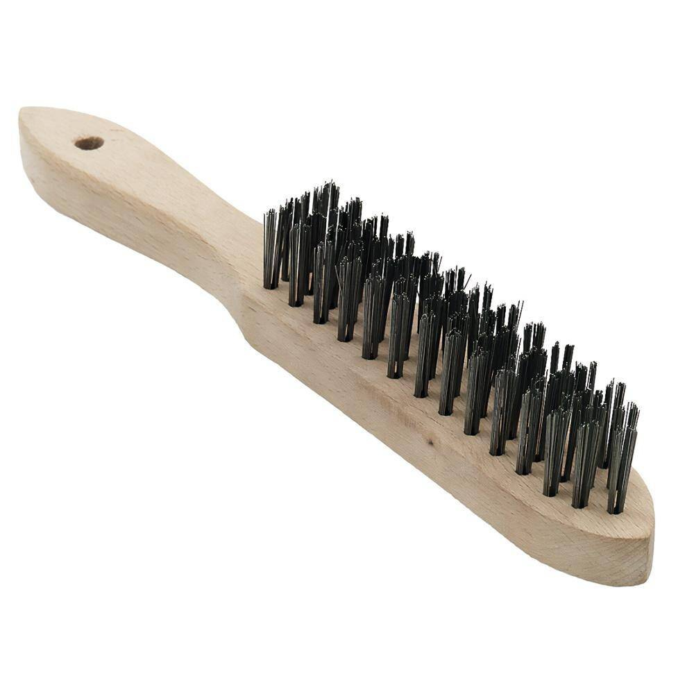 PROMAT Drahtbürste in geschweifter Form aus Holz mit Gussstahl-Draht 4-reihig. Besatzhöhe: 25 mm; Nutzlänge: 145 mm.