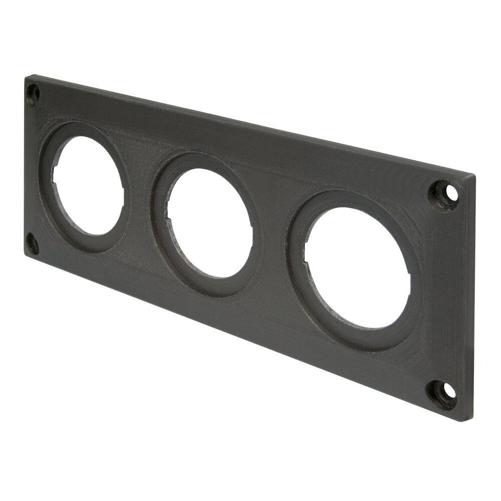 Mit drei Einbauöffnungen je ø 28 mm, zur eigenen Konfektionierung mit PRO CAR Powersteckdosen und PRO CAR USB-Steckdosen. Befestigung mittels beiliegender Schrauben.