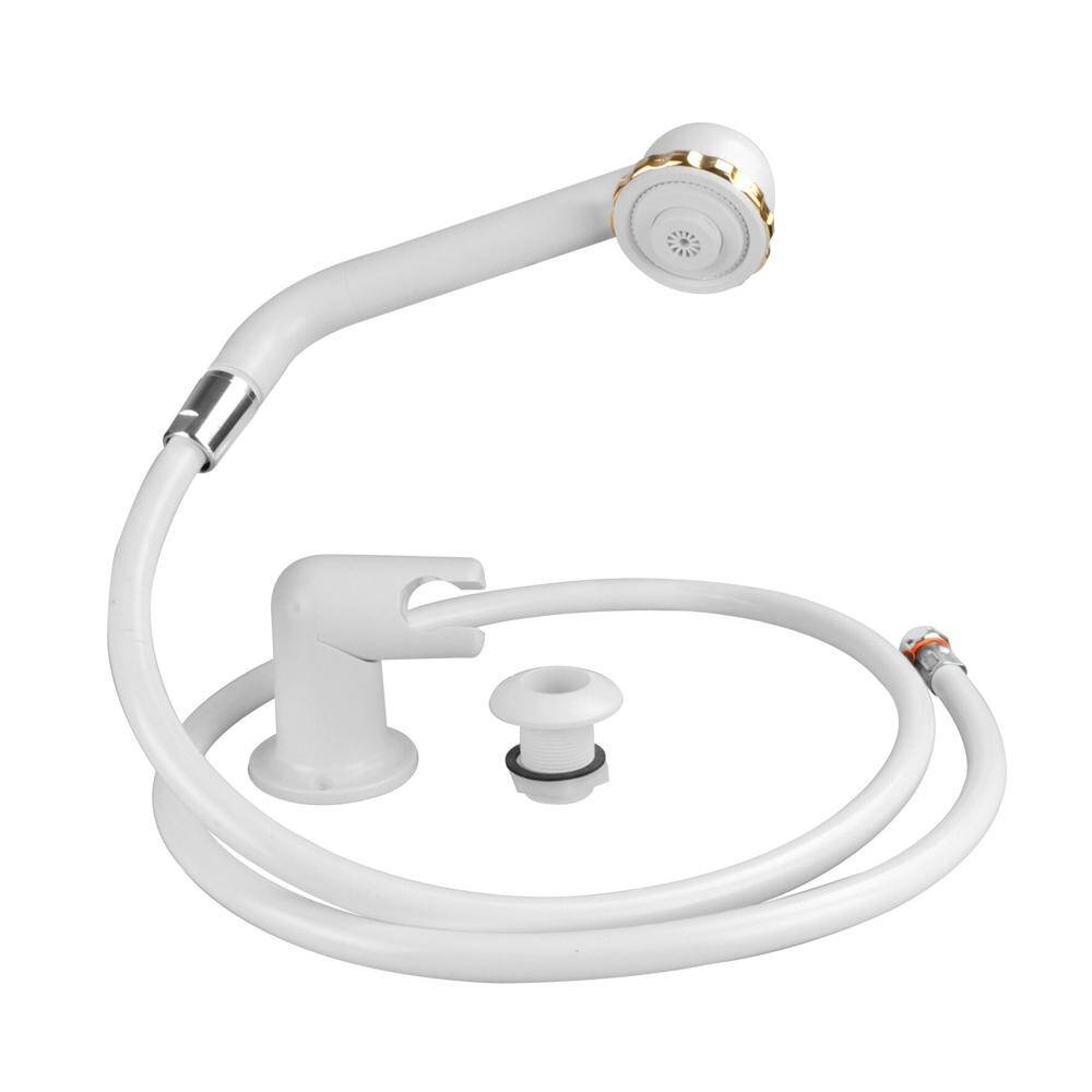 Bestehend aus: Brausekopf, Schlauch 1,5 m, Wandhalterung und Adapter. Anschluss: 3/8".