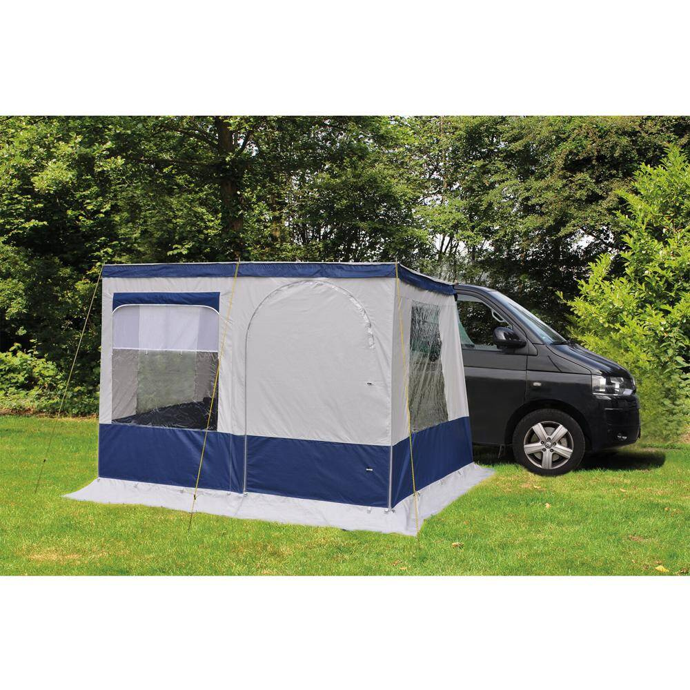 Mit diesem Erweiterungsset kann man aus dem Sonnensegel Fjord ein Vorzelt zaubern. Einfach die Seiten- und Vorderwand mit dem Klettband an der Innenseite des Sonnendachs montieren. Die Seitenwände und Vorderwand werden mit einem Reißverschluss verbunden. Somit entsteht ein komplett geschlossenes Vorzelt und Sie sind vor Wind und Regen geschützt. Die Seitenwände haben Klarsichtfenster, die Vorderwand zusätzlich noch eine Eingangstür. Inklusive Stangenset. Material: All Weather Tex.