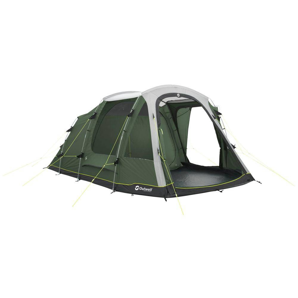 Ausgestattet mit zwei Premium-Schlafkabinen, abgedunkeltem Innenzelt und Outwell Quick & Quiet Innentüren. Die volle Stehhöhe im Wohnbereich, das Outwell HookTrack System und das rückseitige Lüftungssystem sorgen für vielseitigen Campingkomfort. Bereits montierte, selbstleuchtende Abspannleinen garantieren einen schnellen Aufbau. Strapazierfähiger, wasserdichter, eingenähter Zeltboden. Mit Netztaschen, Sturmbändern und versiegelten Nähten.