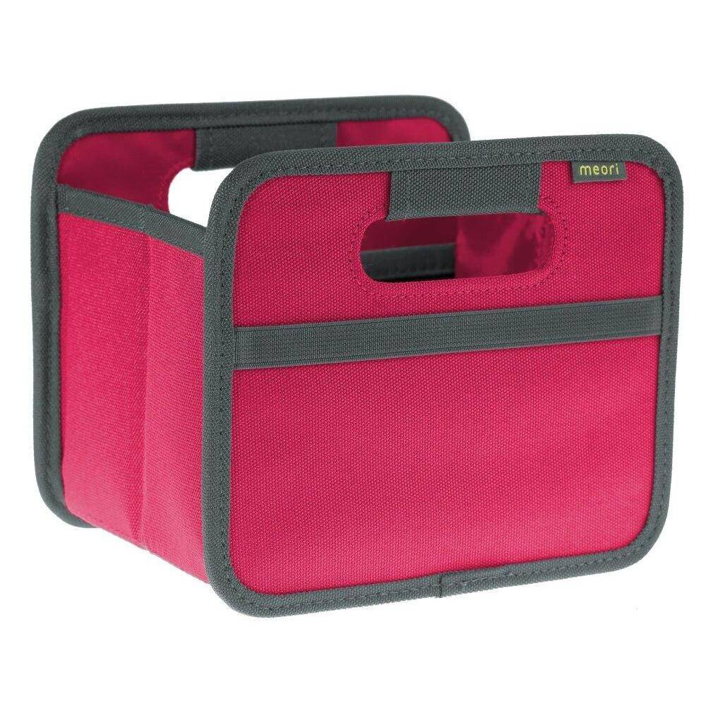 Die Minivariante der meori Faltbox lässt sich für unzählig viele Zwecke verwenden: auf dem Schreibtisch, im Badezimmer, in der Küche oder im Flur setzen die kleinen Eyecatcher farbenfrohe Akzente und ordnen kleine Dinge wie Stifte, Kosmetika, Küchenutensilien oder Schlüssel einfach und schnell. Auch unterwegs sorgen sie für Ordnung und Struktur. Mit ihren kompakten Abmessungen (B 16,5 x H 14 x T 12,5 cm) hat die Mini Box ein Fassungsvermögen von 1,8 Litern.