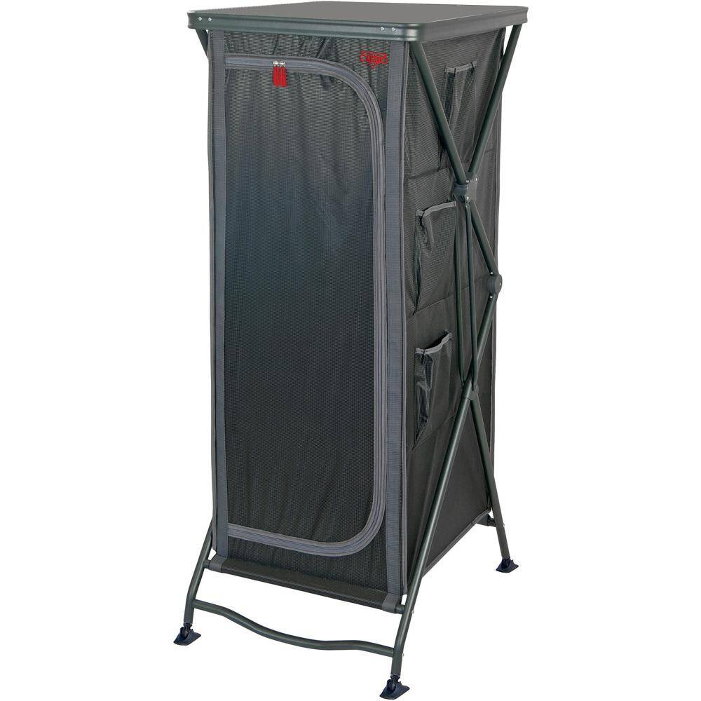 Flexibel einsetzbare Schränke mit herausnehmbaren Ablageböden und oben aufgesetzter Ablageplatte. Das außenliegende, besonders leichte Alu-Gestell gewährleistet schnellen Auf- und Abbau. Die Füße sind höhenverstellbar um Unebenheiten im Boden problemlos auszugleichen. Der abnehm- und waschbare Bezug ist mit seitlichen Utensilientaschen und Fliegengaze zur Entlüftung ausgestattet. Lieferung erfolgt inkl. einer praktischen, strapazierfähigen Trage- und Aufbewahrungstasche.