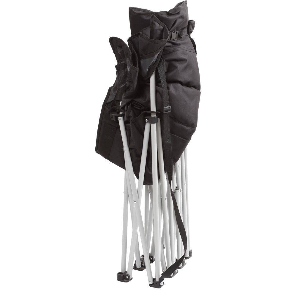 Sehr komfortables 2-Personen-Sofa mit leicht angewinkeltem Faltgestell. Ideal, um den Vorraum von Zelten oder Vorzelten entspannt zu genießen. Das Sofa ist mit einem zentral angebrachten Organizer und breiten Armlehnen inklusive Getränkehaltern ausgestattet. Bequem gepolsterter Sitz- und Rückenbereich. Sekundenschneller Auf- und Abbau ohne spezielle Montage. Das kompakte Packmaß ermöglicht leichtes Verstauen. Inklusive Packsack für Aufbewahrung und leichten Transport.