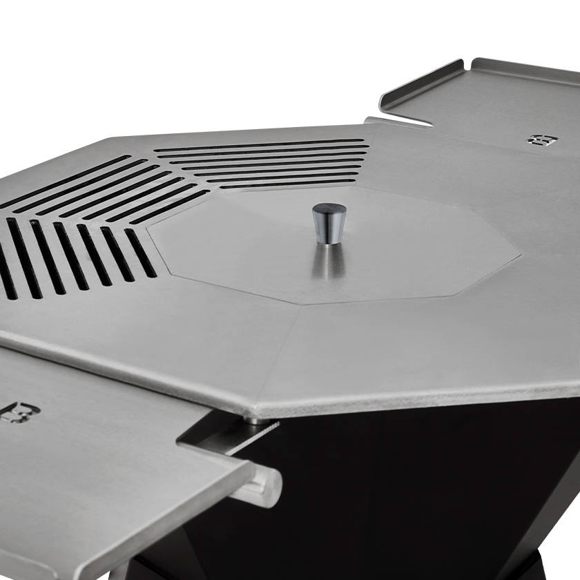 - BRASERO DESIGN verfügt über einen 796 cm² großen zentralen Grill aus Edelstahl 304, herausnehmbare Seitenablagen für Teller und Geschirr sowie einen Handlauf, der die Ablagen stützt und die Handhabung erleichtert.