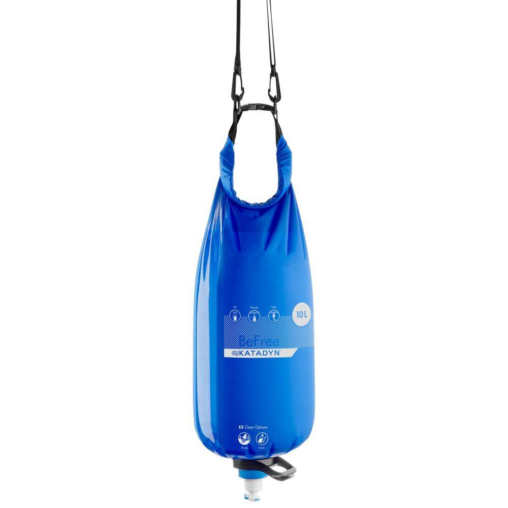 Die Katadyn BeFree Gravity Linie macht sauberes Trinkwasser verfügbar, ohne dass gepumpt werden muss. Das faltbare Filtersystem nutzt die Schwerkraft, um frisches, sauberes Wasser zu produzieren. Die EZ-Clean Membrane™ ermöglicht eine besonders schnelle Durchflussrate von 2 l/min. Der Hohlfaserfilter entfernt mit seiner Porengröße von 0,0001 mm zuverlässig Bakterien, Zysten und Sedimente. Der Wasserstand im Filterbeutel ist dank Sichtfenster deutlich erkennbar. Inkl. Tragegurt. Der Auslassschlauch lässt sich über ein Schnellverschlussventil mit automatischem Auslaufstopp leicht abnehmen, was den Kontakt mit kontaminiertem Wasser beim Nachfüllen verhindert. Die Kapazität des Filters beträgt bis zu 1000 Liter, abhängig von der Wasserqualität. Zum Reinigen der EZ-Clean Membrane™ genügt es, sie in Wasser zu schütteln oder zu schwenken. Wenn das gefilterte Wasser nicht am selben Tag verwendet wird, lässt es sich mit Katadyn Micropur sicher und einfach konservieren.