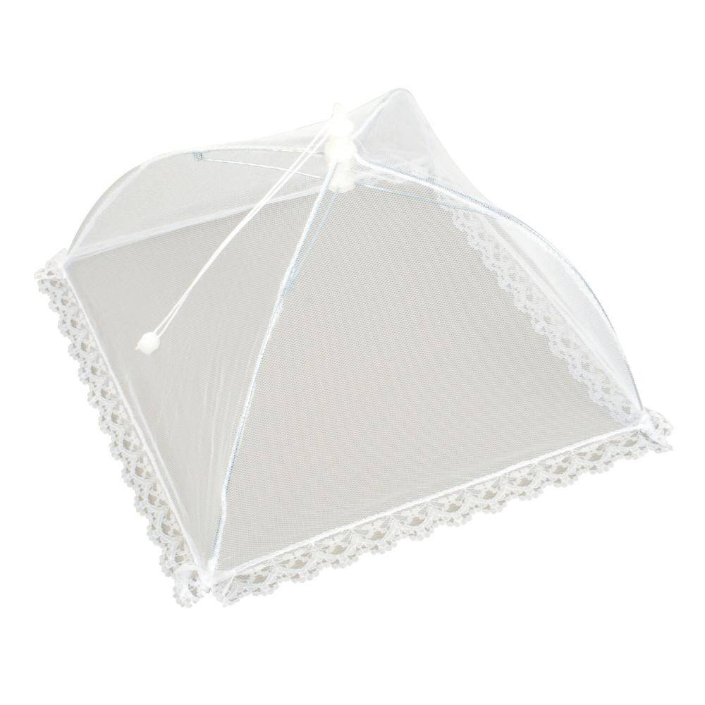 Schützt Speisen gegen Staub und Insekten. Netz aus Synthetik. Waschbar. Mit Spannbügel zum Ausfalten.