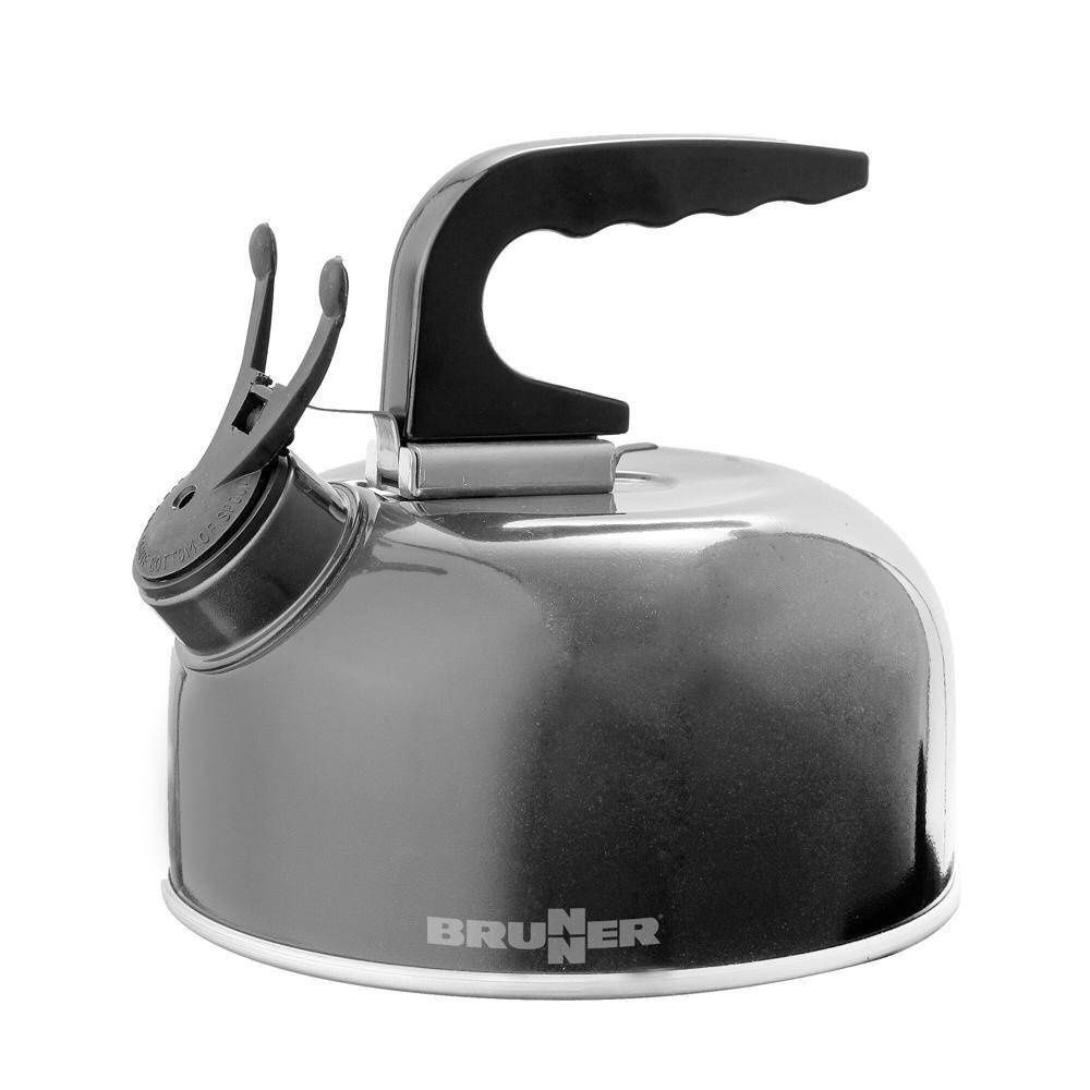 Wasserkessel aus gehärtetem Aluminium. Verfügt über einen abnehmbaren Kunststoffgriff.