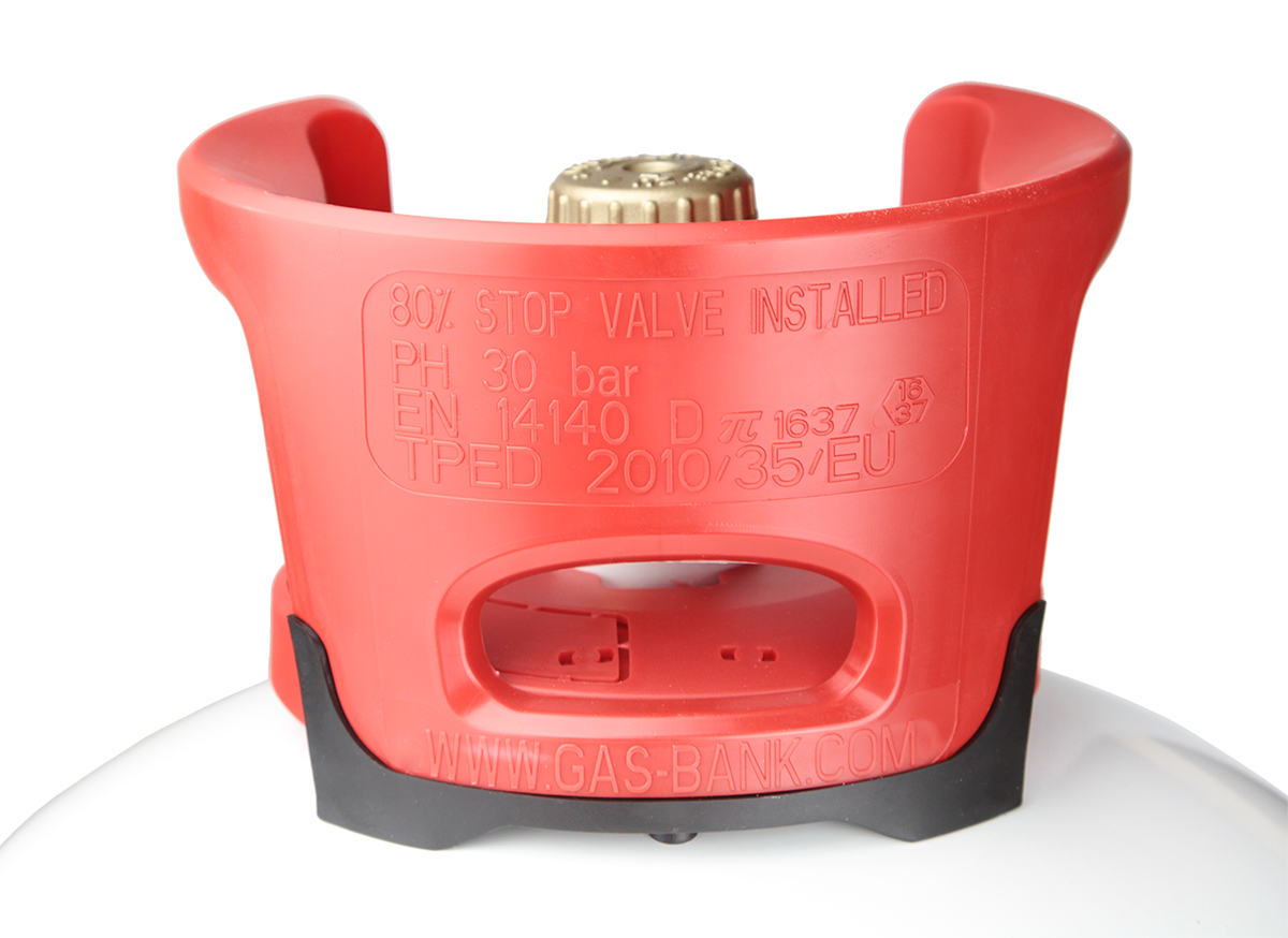 Die GasBank LS-Flaschen sind mit einem OPD-Ventil ausgestattet, das verhindert, dass die Flasche über 80 % ihres Fassungsvermögens hinaus gefüllt wird.
