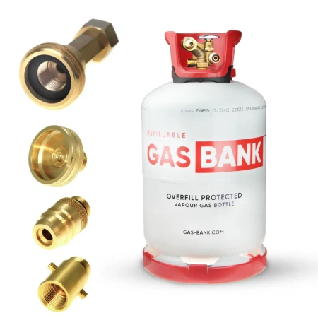 GasBank LS DUO 11kg - Flüssiggasflasche aus leichtem Zwei-Phasen-DUPLEX-Stahl Mit ACME-Adapter für Tankstellen in ganz Europa