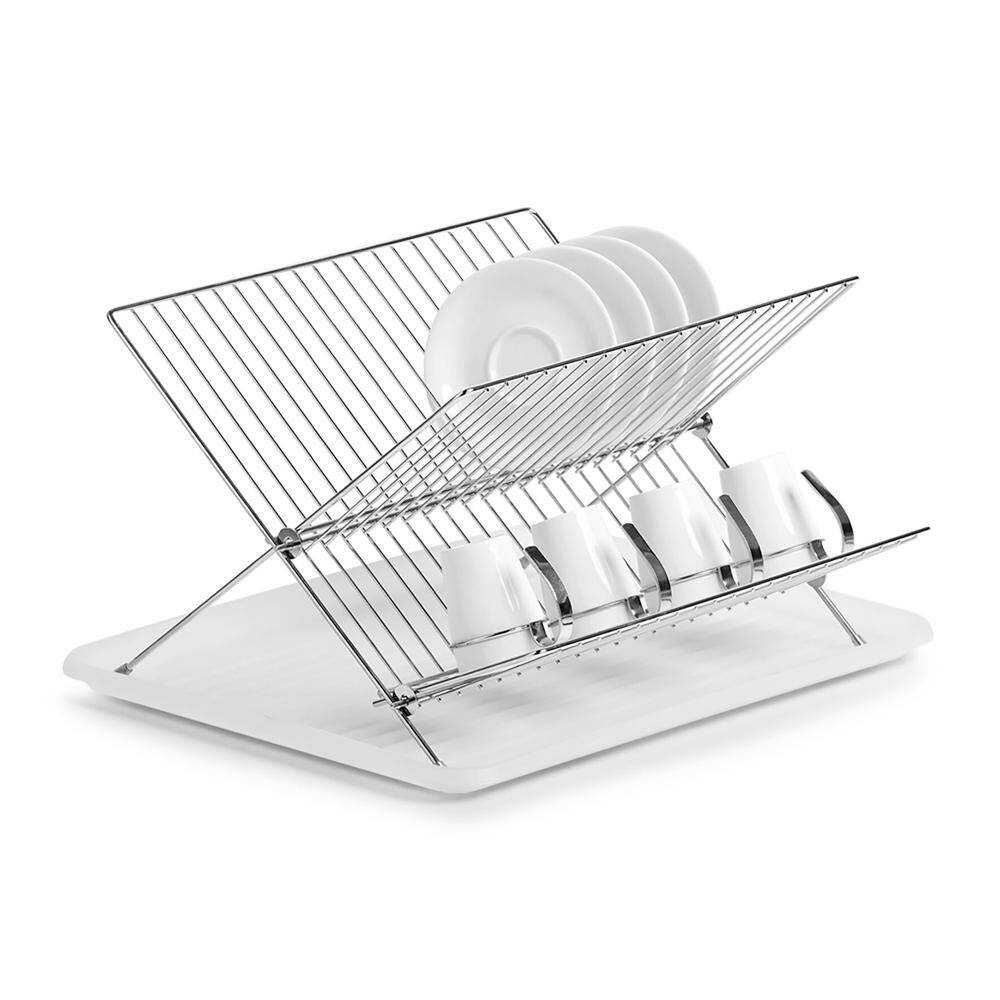 Dieser praktische Geschirr-Abtropfständer aus hochwertigem Metall und robustem Kunststoff schafft zusätzliche Abtropffläche in Ihrer Küche. Damit sich kein Wasser staut, ist der Abtropfständer mit mehreren Rillen versehen.
