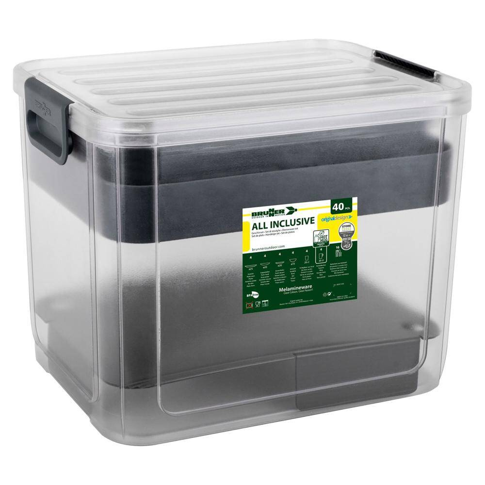 Das elegante Geschirr verbindet Design und Funktionalität. Es ist als 16-teiliges und als 40-teiliges Set erhältlich. Das 40-teilige Set wird mit Transportbox VIP geliefert.