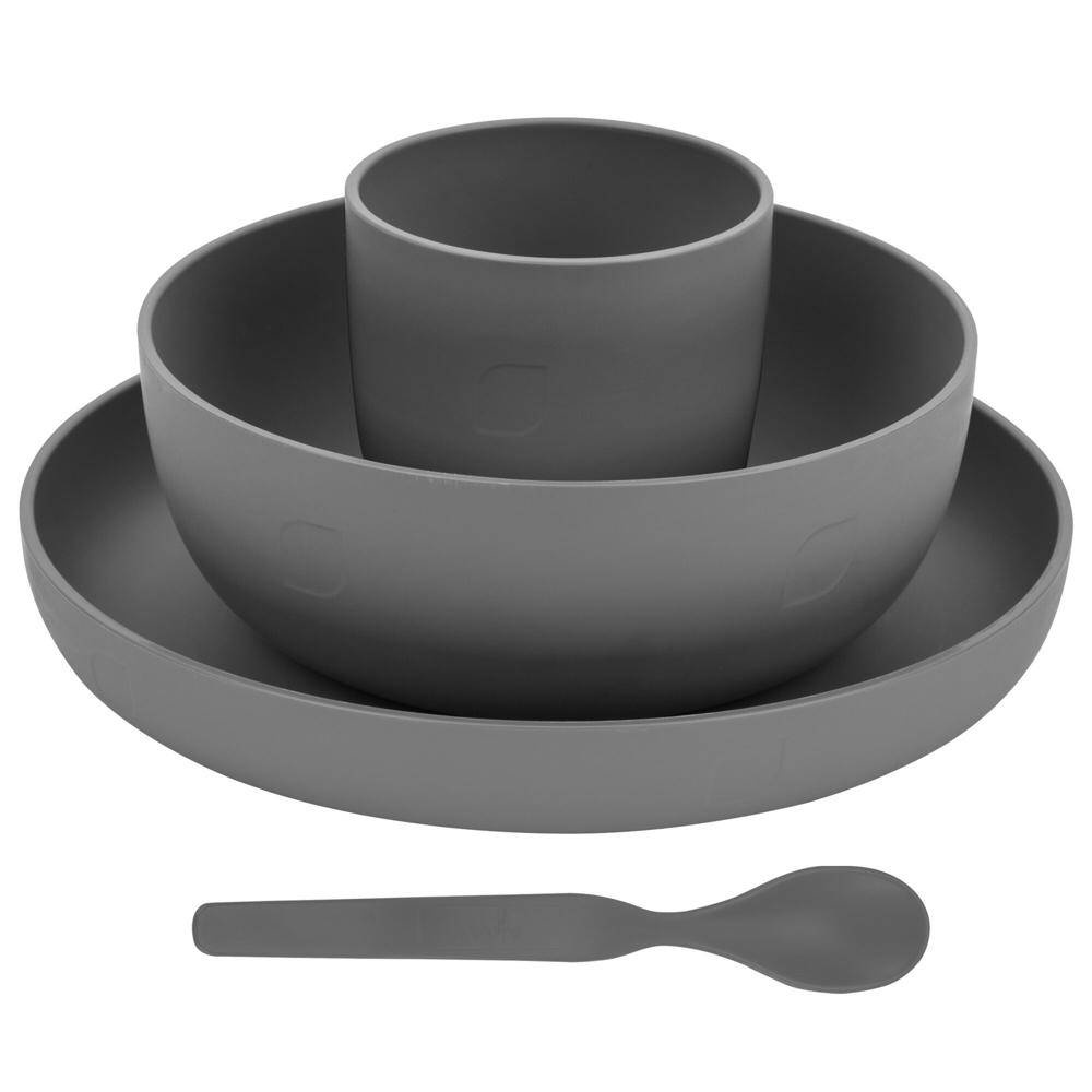 Durchdachtes und schönes Design für die ganze Familie. Besteht ausschließlich aus nachwachsenden Rohstoffen (100 % Zuckerrohr und Mineralien). 100 % frei von BPA (Weichmacher), Melamin oder Formaldehyd. 100 % recycelbar und spülmaschinengeeignet.Das 4-tlg. Set enthält: