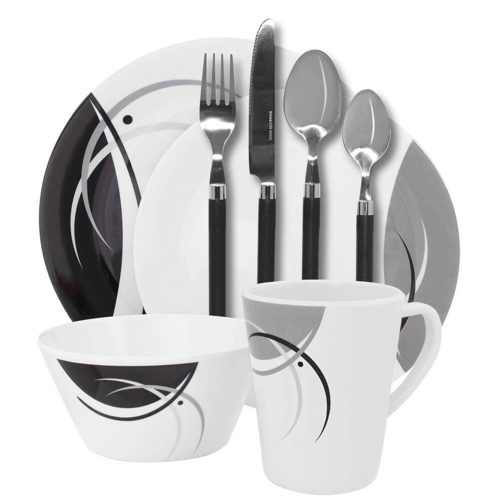 Das 8-tlg. Geschirrset mit Besteckset für 2 Personen ist ideal für den Einsatz im Wohnmobil oder Zelt.