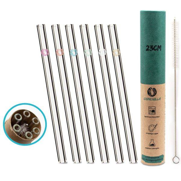 Glastrinkhalme sind die umweltfreundliche Alternative zu herkömmlichen Strohhalmen aus Plastik. Sie bestehen aus stabilem, hochwertigem Borosilikatglas (Laborglas). Inkl. Reinigungsbürste. Jeder Trinkhalm hat eine farbige Kennzeichnung. Plastikfrei verpackt, recycelbar und für Heiß- und Kaltgetränke.