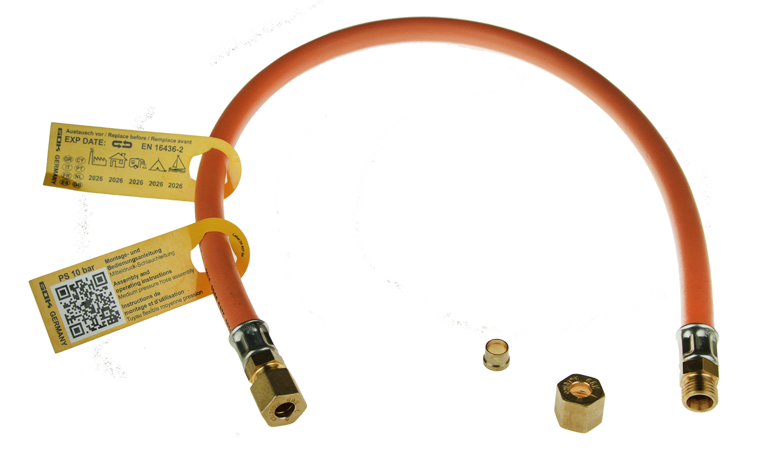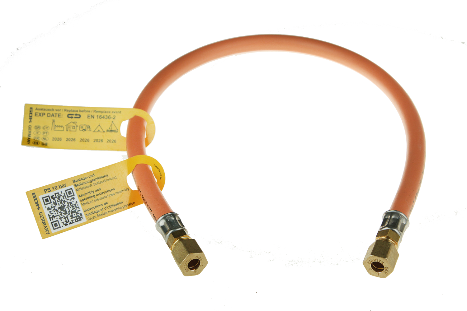 Mitteldruck-Gasschlauch PS 10 bar (Messingverpressung)