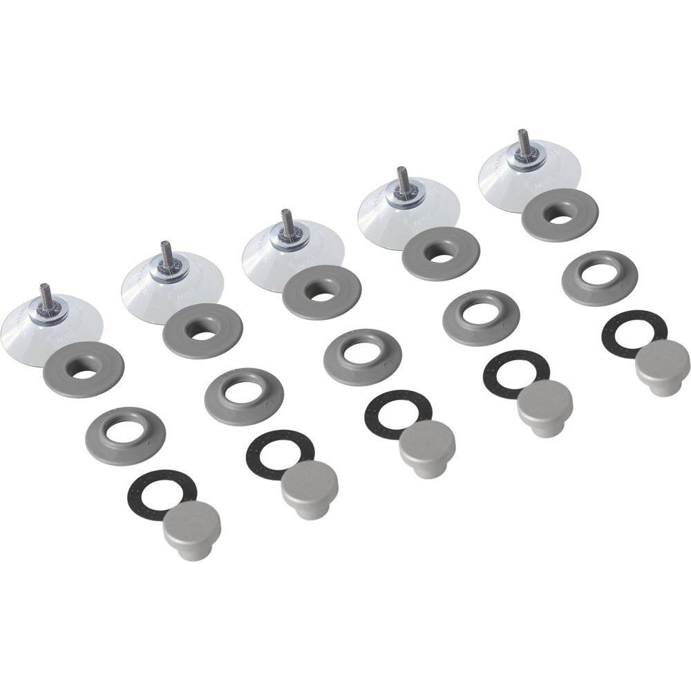 Glasklarer Sauger mit stabilen Clipösen und enormer Haltefähigkeit. Durchmesser 40 mm, 5 Stück. Grifffarbe hellgrau.