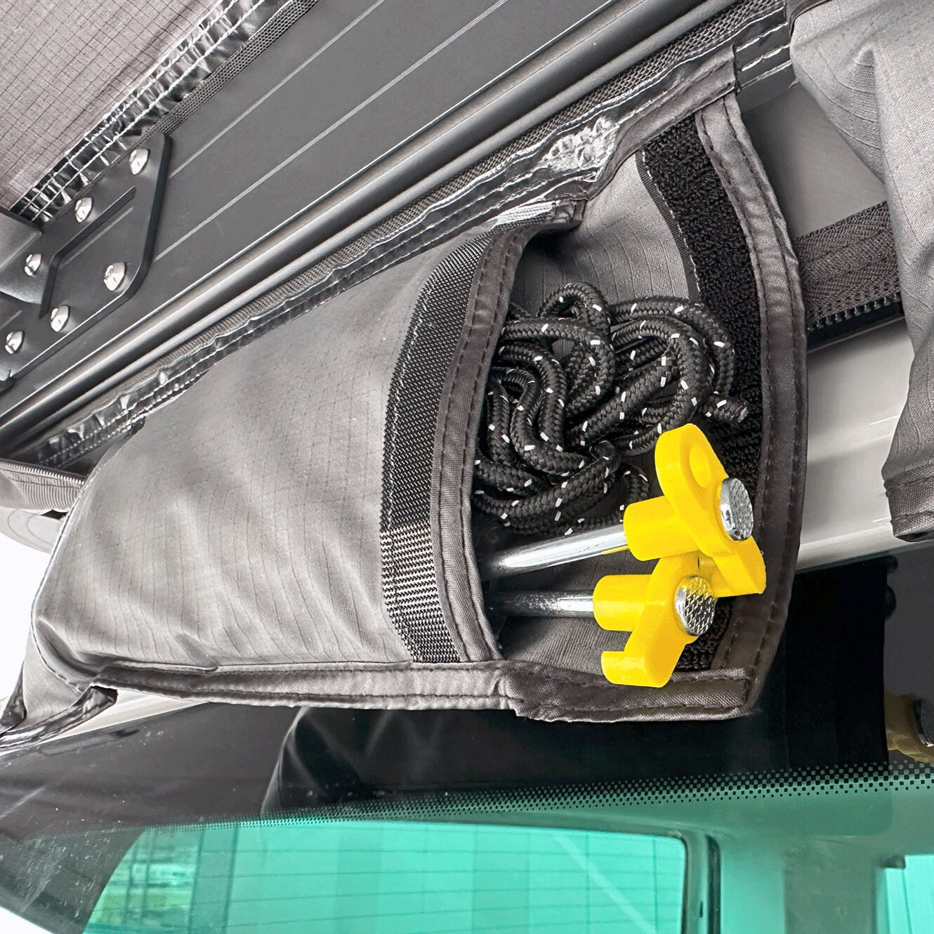 Ihr leichtes Design und die kompakten Maße im zusammengeklappten Zustand machen sie transportabel, was bei langen Reisen von unschätzbarem Wert ist. Egal, ob Sie einen Wochenendausflug ins Grüne planen oder eine längere Reise unternehmen, die Markise horntools Horizon 180° wird ein zuverlässiger Begleiter sein.
