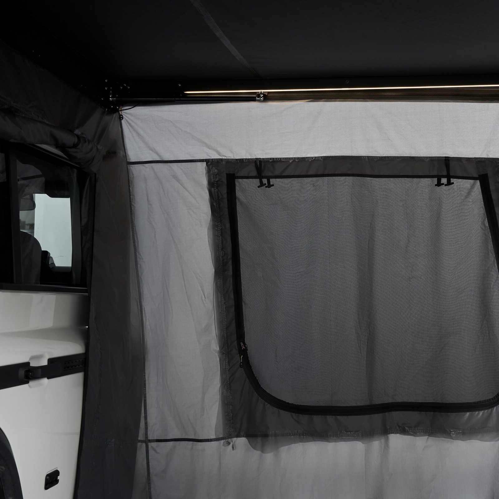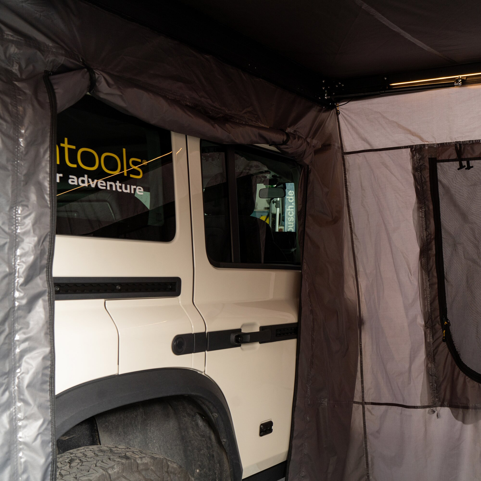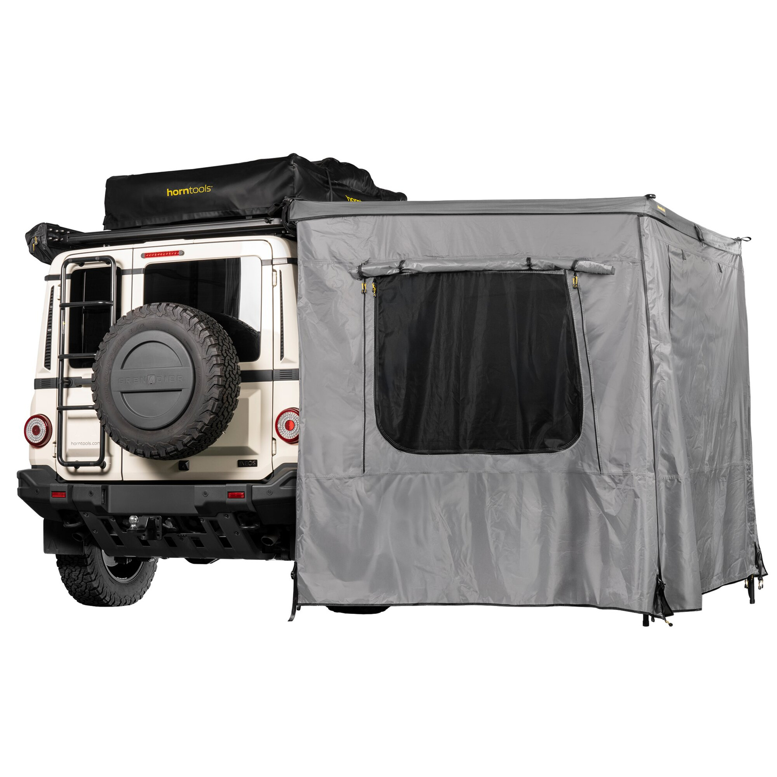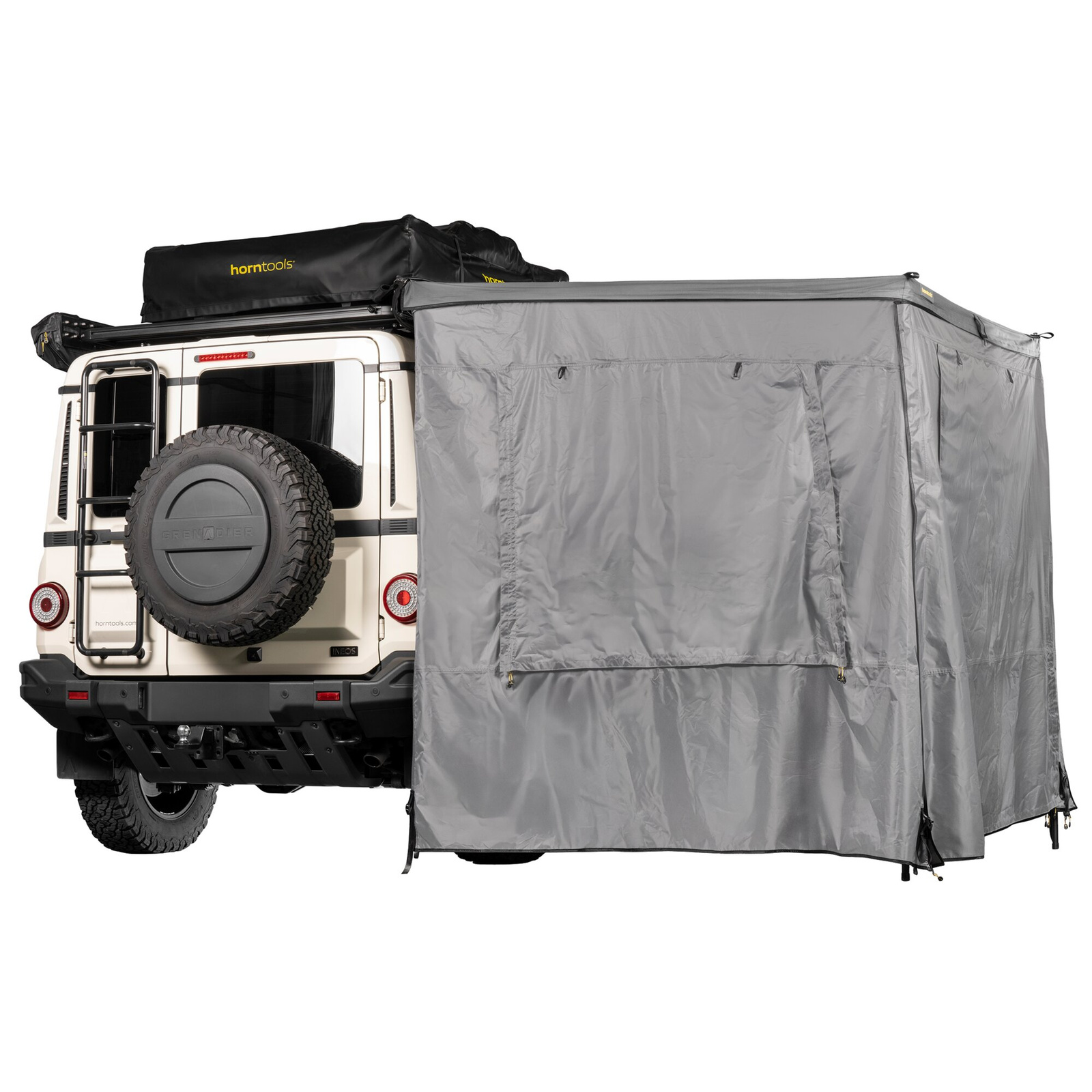 Die Horntools Seitenwände sind speziell dafür entworfen, um zu Sonnensegeln des Typs Horizon Straight zu passen. Mit einer Höhe von 200 cm bieten sie vollständigen Schutz vor Sonne, Wind und Regen und schaffen gleichzeitig zusätzlichen nutzbaren Raum. Ideal für Familien, die Komfort und Privatsphäre beim Aufenthalt im Freien schätzen. Die Seitenwände sind einfach zu montieren und zu demontieren, was sie zu einer hervorragenden Lösung sowohl für kurze Ausflüge als auch für längere Campingaufenthalte macht.