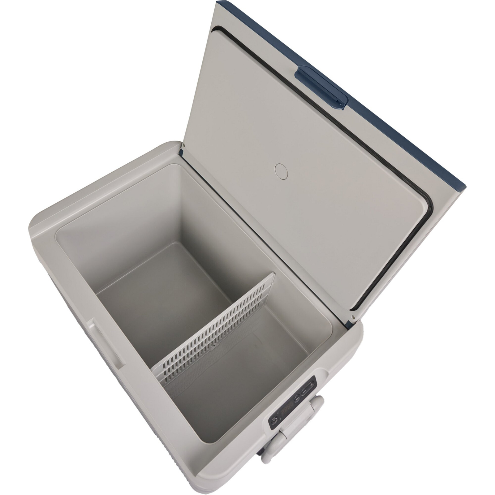 Die vielseitige Igloo ICF 80DZ bietet den besonderen Vorteil einer 2-Zonen-Kühlung. Sie verfügt über 2 separate Fächer mit 44 bzw. 34 Liter Nutzinhalt, getrennte Deckel und getrennte Temperaturregelung. So können Lebensmittel und Getränke bei unterschiedlichen Idealtemperaturen gelagert werden. Das effiziente Kompressorsystem sorgt für Temperaturstabilität in der Box bis +32 °C Umgebungstemperatur. Trotz ihrer Größe ist die ICF80DZ leicht zu tragen. Dafür sorgen die 2 stabilen Klappgriffe an den Seiten.