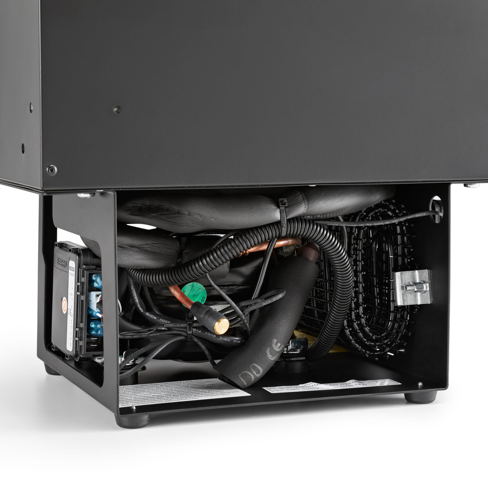 The Indel B TL16 represents the ultimate in ultra-compact refrigeration with intelligent design features. With its super compact 16L capacity, incredibly shallow 240mm depth, customizable lid for seamless integration, clever recessed design accommodating 1.5L bottles, top-loading efficiency, digital control (0°C to +10°C), and exceptional 0.15 kWh/24h efficiency, this refrigerator is the perfect solution where space is absolutely critical and professional integration matters.