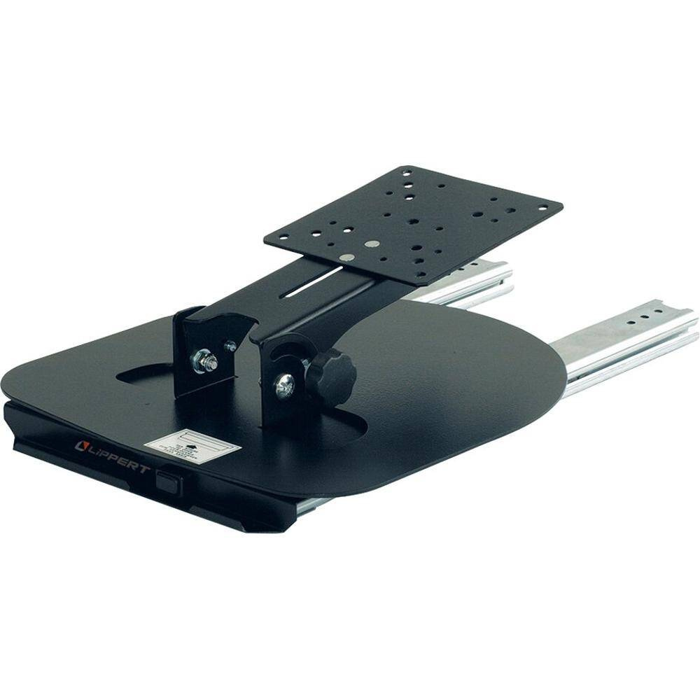 Ermöglicht ein Herausziehen des TFT-Gerätes um 37 cm. Die Monitorhalterung (VESA 75 & 100) ist höhenverstell- und nach vorne neigbar sowie die Trägerplatte schwenkbar. Um das Gerät platzsparend zu verstauen kann der Halter bis zu 90° nach hinten abgeklappt werden. Tragkraft 10 kg, Maße B 26 x T 37,5 cm, Gewicht 3,8 kg.