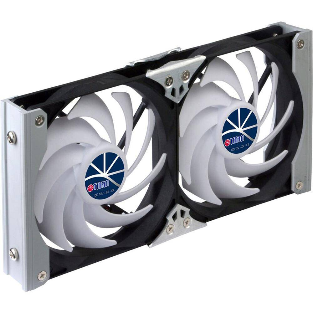 Trotz des starken zusätzlichen Kühleffekts arbeitet dieser Doppellüfter mit 12 / 24 Volt-Anschluss sehr leise. An der externen Steuereinheit kann die Drehzahl wahlweise manuell geregelt oder dem automatischen Drehzahlregler mit Temperatursensor überlassen werden. Das Gehäuse dieses stabilen, in 3 Größen verfügbaren Lüfters besteht aus Aluminium.