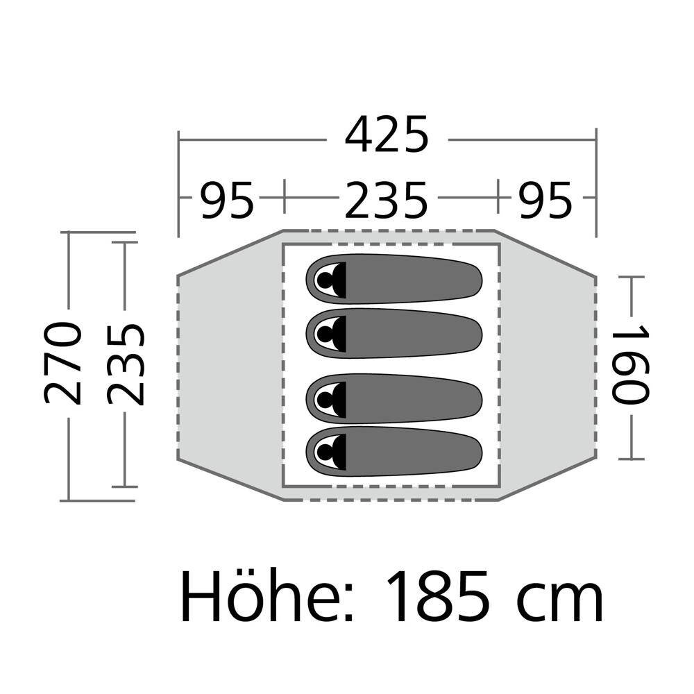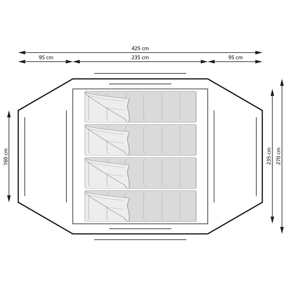 Das Modell Odyssey 4 mit einem sehr geräumigen Innenzelt bietet Platz für bis zu vier Personen. Das Innenzelt hat eine perfekte Stehhöhe und verfügt über 4 Eingangstüren, die mit zusätzlichen Moskitonetztüren für eine optimale Belüftung ausgestattet sind. Außerdem sind die Eingangstüren aufrollbar und sorgen für viel Licht im Zelt. Der Vorraum bietet Platz für Kochgeschirr und Gepäck.