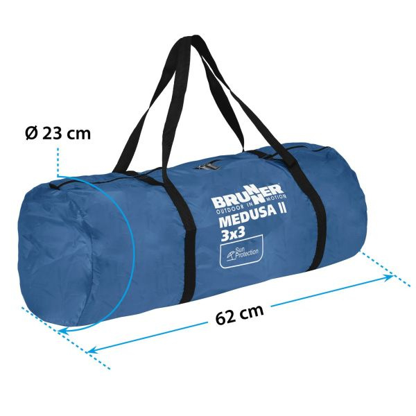 Pavillon mit außenliegendem Stahl- und Fiberglasgestänge. Einfacher, schneller Aufbau. Geringes Gewicht. Inklusive zwei abnehmbaren Seitenwänden und Packsack. Material: 68D Polyester PU. In 2 Größen/Farben. Gestänge: ø 13 mm GFK, ø 19 mm Stahl
