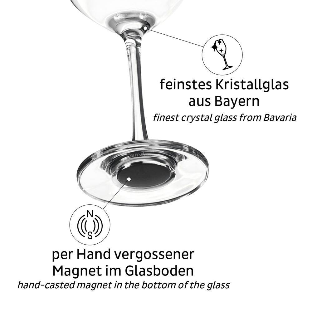 Hochwertige Kristallgläser mit integriertem Magnet. Endlich können Sie Echtgläser standfest verstauen und Ihre Getränke aus feinstem Glas genießen. Nicht spülmaschinengeeignet. Inkl. Metall-Nano-Gel-Pads.